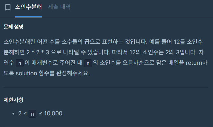 주어진 숫자 n의 소인수를 순서대로 정렬한 배열을 구하는 문제이다
