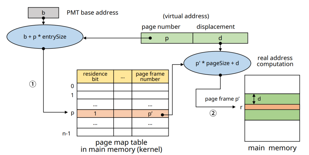 - D = 페이지의 처음 위치에서 해당 주소까지의 거리(distance). Offset이라고도 한다