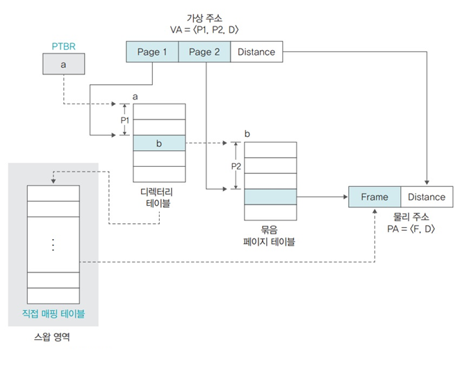- 페이지 테이블 전체를 스왑 영역에서 관리하는 방식으로 그 중 일부만 물리 메모리에 가지고 있다