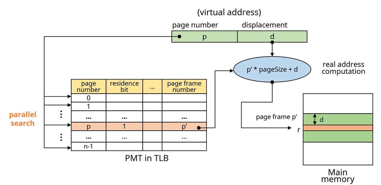 - 물리 메모리에 저장된 일부분의 테이블을 변환 색인 버퍼(Translation Look-aside Buffer, TLB) 이라고 한다