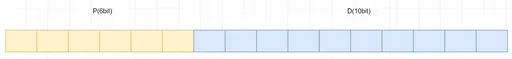 따라서 가상 주소로 사용할 수 있는 16bit 중 6bit는 페이지 번호로, 10bit는 페이지의 처음 위치에서 해당 주소까지의 거리로 사용된다.