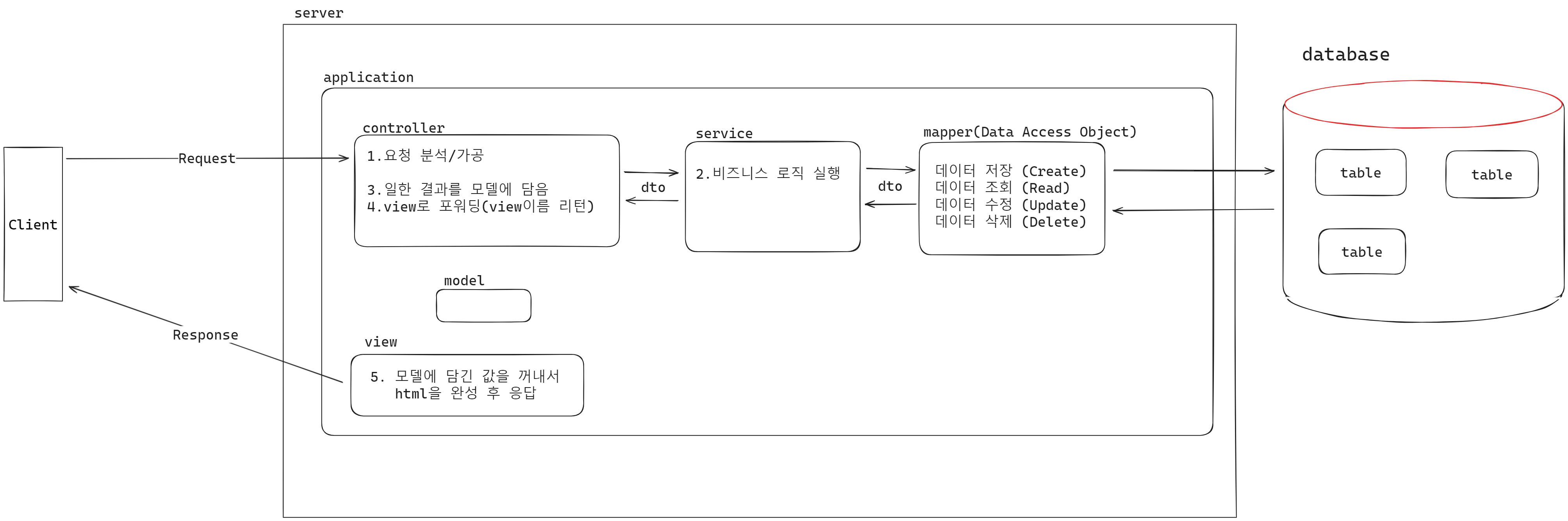 3. Mapper가 데이터 CRUD를 처리하고, 결과값을 DTO에 담아 서비스에 보냅니다