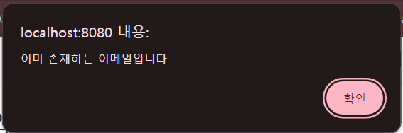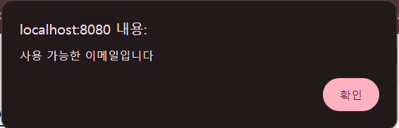 Mapper에서 이메일 중복값을 조회해 반환된 Member 값이 없으면 '사용 가능한 이메일입니다', 반환된 Member값이 있으면 '이미 존재하는 이메일입니다'를 반환합니다