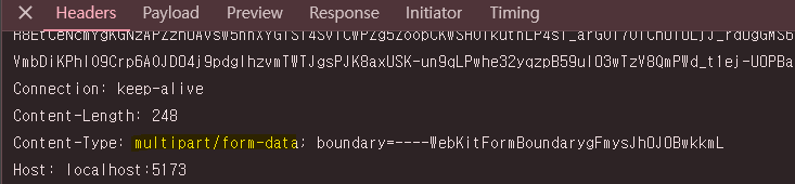 헤더에서 데이터 타입이 변경되어서 전송되는 것을 확인할 수 있습니다.