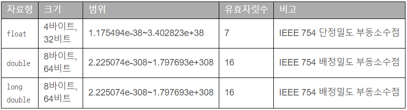 실수 타입은 부호 + 지수 + 가수 부분으로 이루어진다. 이는 근사값이기 때문에 약간씩 다른 값이 출력될 수 있다.