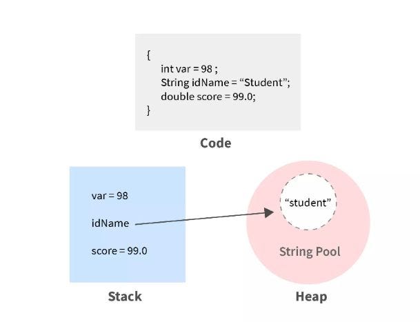 변수들은 모두 스택이라는 메모리 영역에 생성되는데 참조 타입의 경우 힙 메모리 영역의 참조 타입 번지를 저장한다.